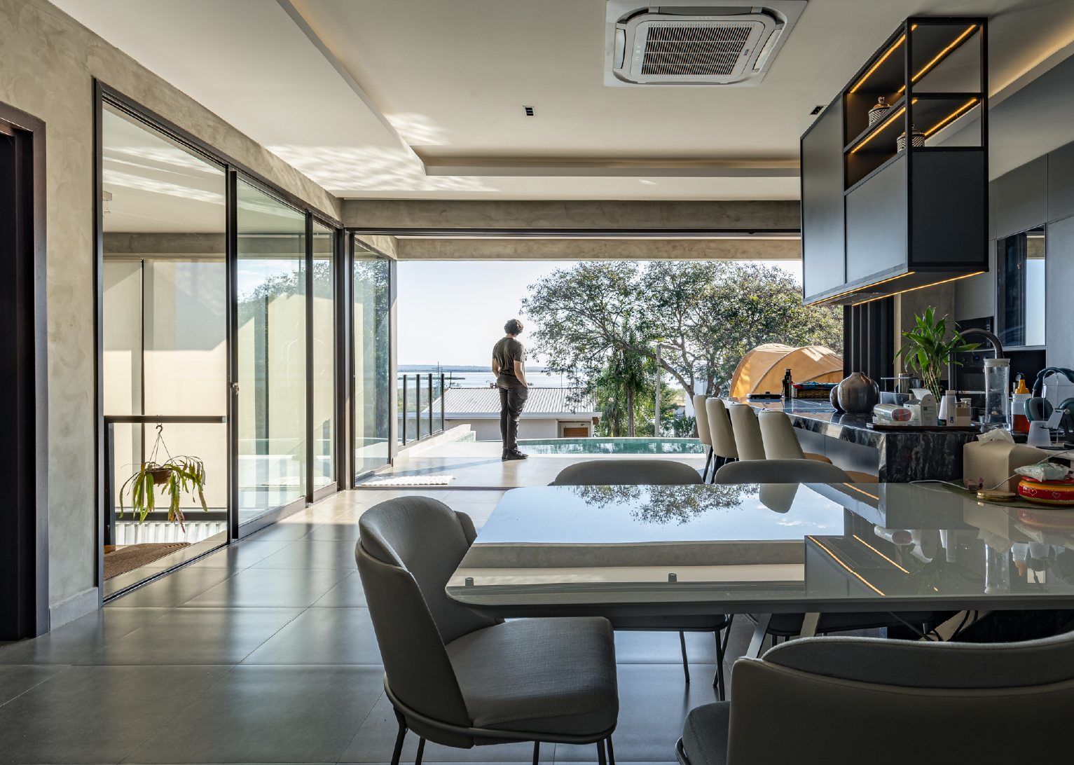 De la mano del blog Gesto recorremos la casa Omitofo —proyectada y construida por NOZ— a través del relato del Arq. Fabio Noguer Zacur, quién junto con su hermano, el Arq. Sergio Noguer Zacur, lideran el estudio. Ubicada en la ciudad de Altos, la obra aprovecha al máximo el terreno para enmarcar vistas únicas del lago Ypacaraí y su entorno.